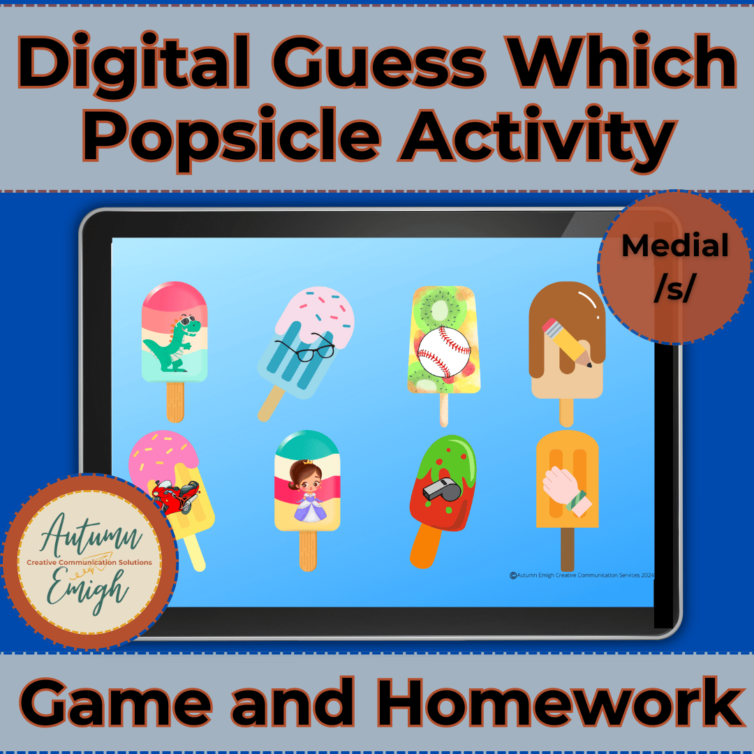 You know I also have a fun game to go with this - and this one is my favorite type of game play. In Guess Which Popsicle, players take turns choosing a secret popsicle or asking yes/no questions to guess the secret popsicle, all while practicing the medial /s/ sound. A great way to spend a break at the pool or in the AC this summer - check it out here:
