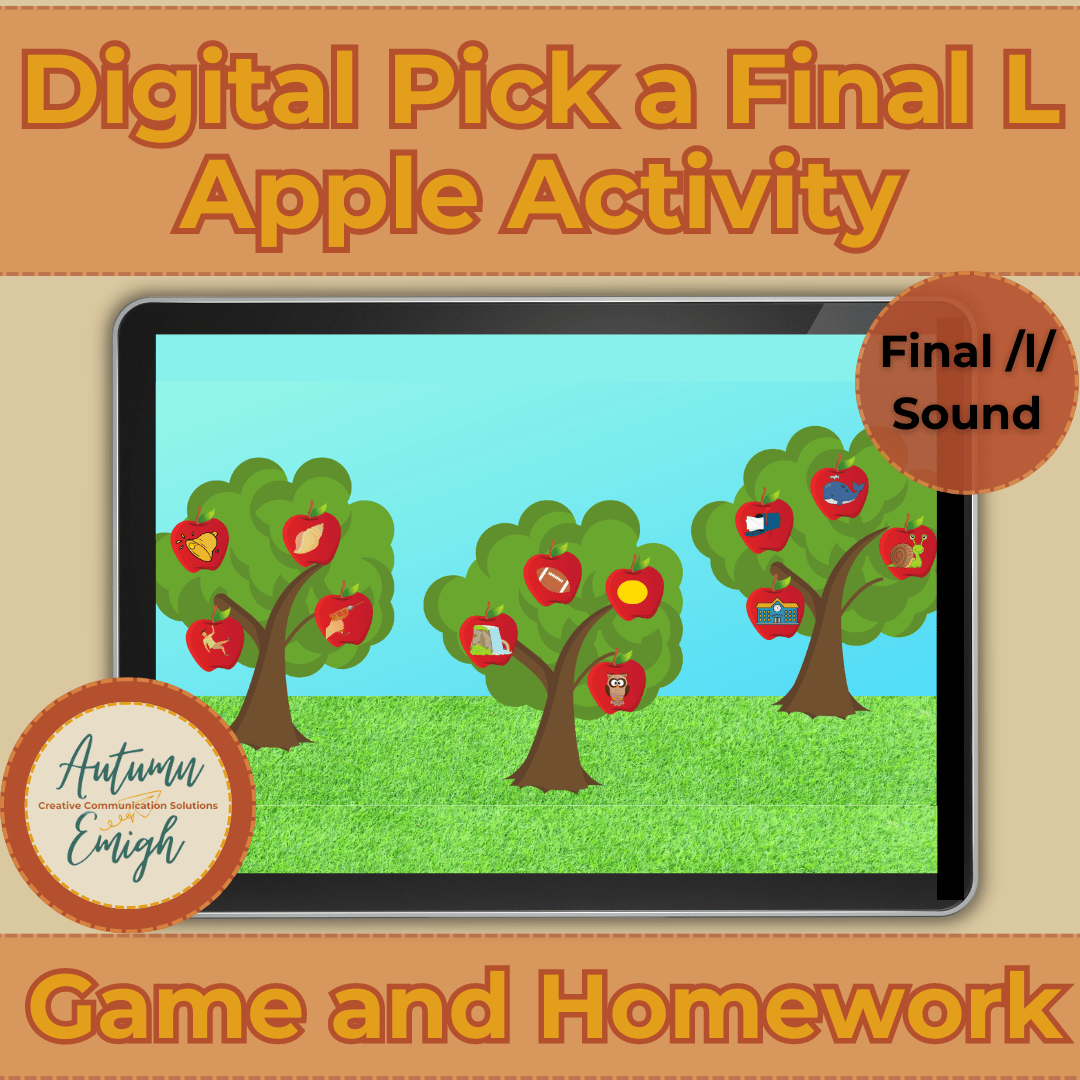 And, of course, you know that I have a game you can play to extend the activity and use to work on articulation or phonics. Pick a Final /l/ Apple Digital Activity or printable is a fun, seasonal game that will help your learner practice or review the final /l/ articulation or phonics sound. You can check it out at the link below: